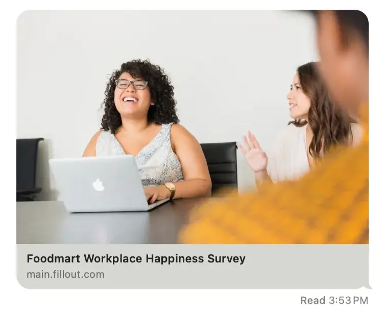 Copy your form link and paste it anywhere you’d like, such as a messaging app or website. Here’s how our example looks like when sent in iMessage. Remember to Publish your form to make the latest changes reflect.