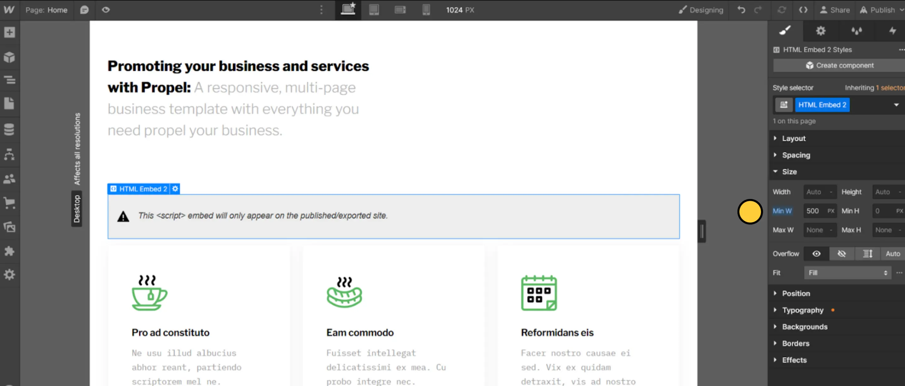 Publish to selected domains. After publishing the changes, click the external link icon next to your site URL (an arrow pointing to the upper right corner) to confirm that the embed works as intended.Troubleshooting common issues