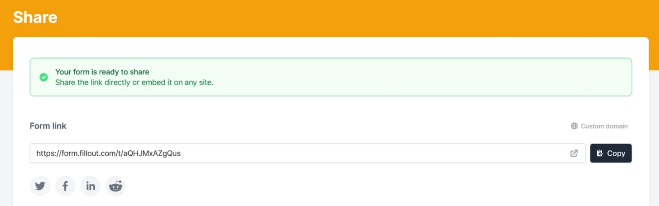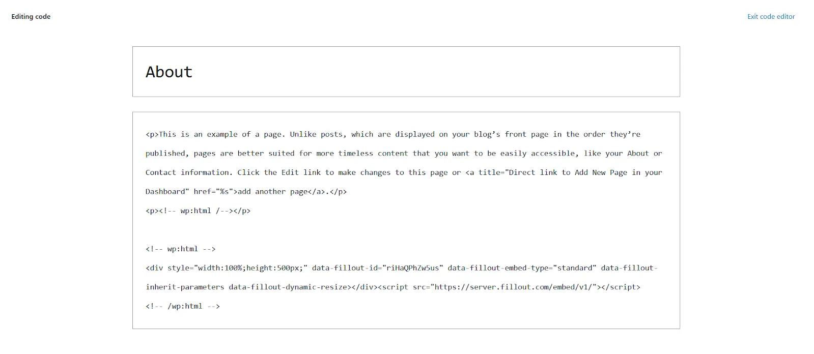The best way to add a Fillout form to your WordPress website is by using one of the embed codes since it gives you more control over the layout and often looks better on the page than using theForm Link.