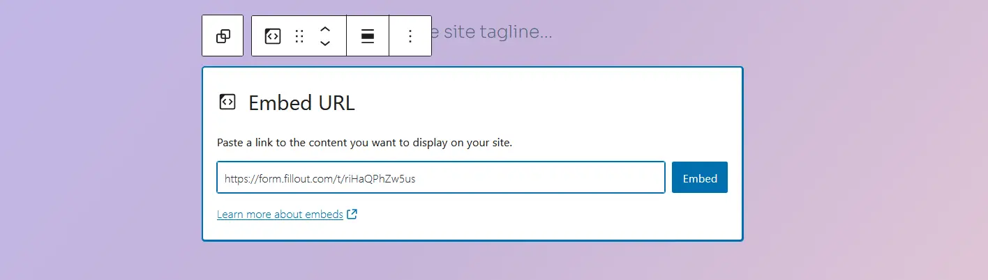 - Add a Fillout embed code to a Custom HTML block using the Visual editor