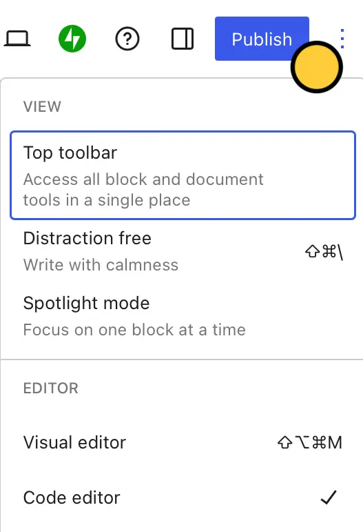 If you want or need to see all of a page’s HTML before adding your embed code, you need to switch to WordPress’s Code editor. This will help you make granular adjustments or troubleshoot code or style-related issues. After publishing your form, open the Share tab. Select your preferred embed style (Standard, Full screen, Popup, or Slider) and clickUse this embed. Adjust your embed style settings to fit your use case (more info here) and click Get the code.